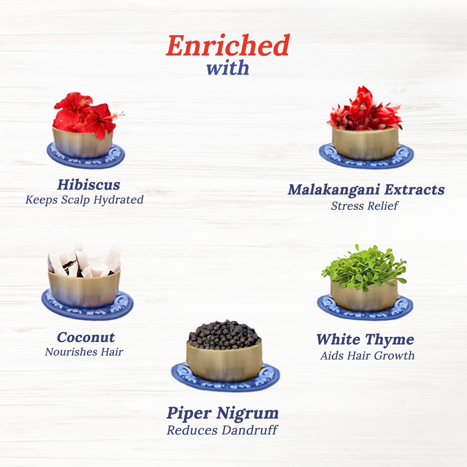 Malakangai extracts gives relief from stress and hibiscus keeps your scalp hydrated