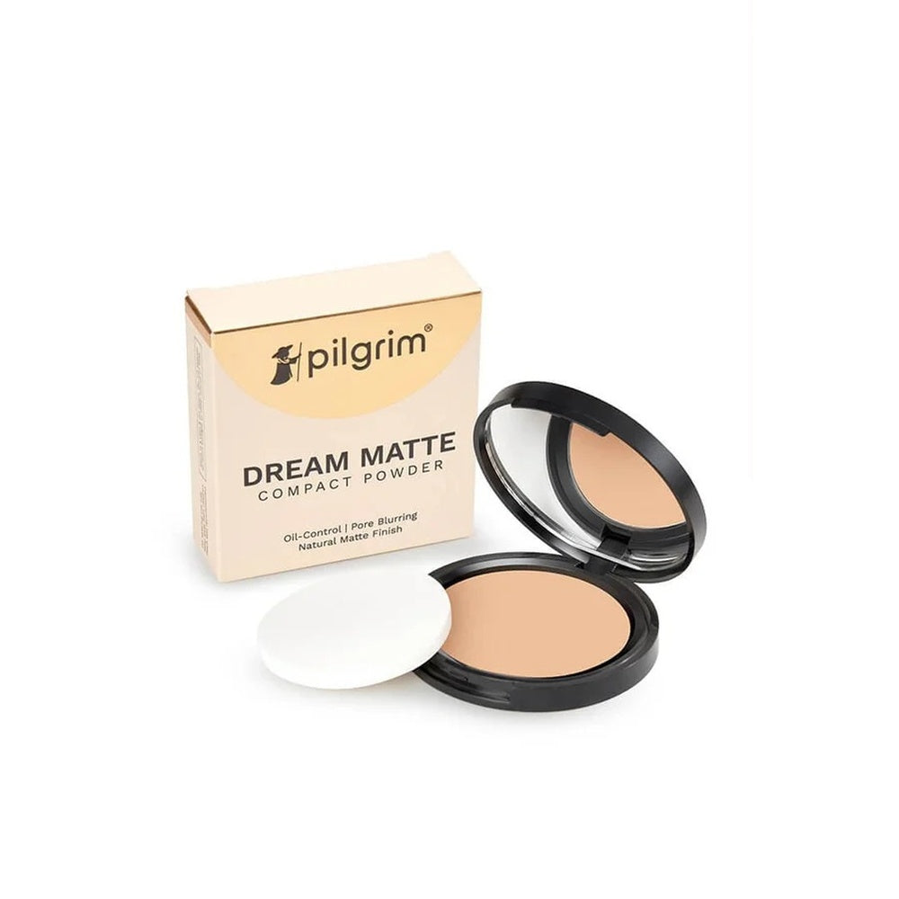 Pilgrim Dream Matte Compact Powder offers a refined, mattifying finish that helps control shine throughout the day. Its lightweight formula provides smooth, even coverage, minimizing the appearance of pores and imperfections for a natural, flawless look. Ideal for all skin types, this compact powder sets makeup effectively while maintaining a comfortable, breathable feel on the skin.
