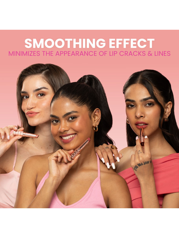 Perfect for bold lips with comfort, the luxurious formula resists feathering and fading, leaving behind a smooth, soft-matte finish that flatters every skin tone.