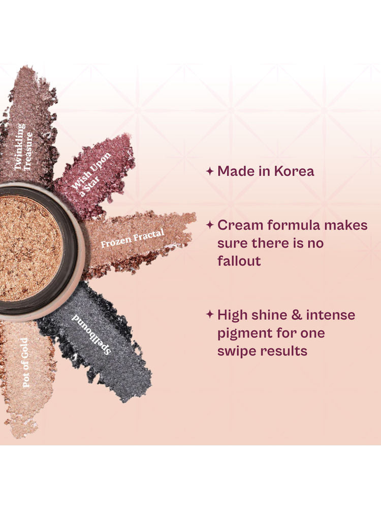 Typsy Beauty Magic Dust Foil Eyeshadow delivers intense metallic payoff in a single swipe. With a lightweight, creamy powder formula, it glides on smoothly for a multidimensional sparkle that catches the light beautifully.