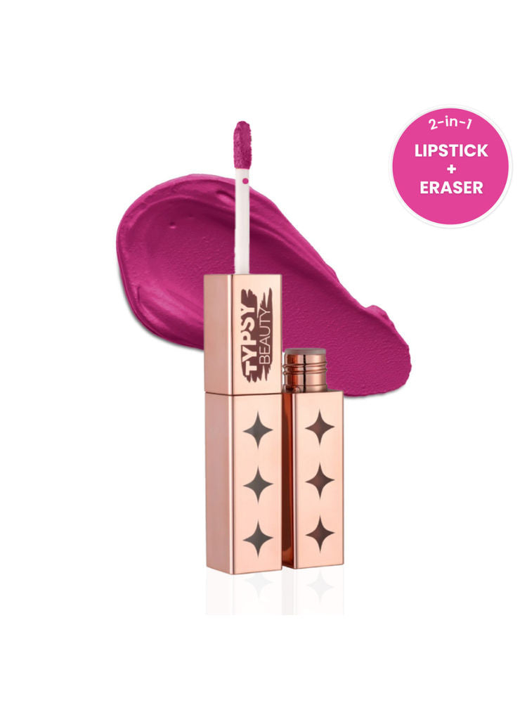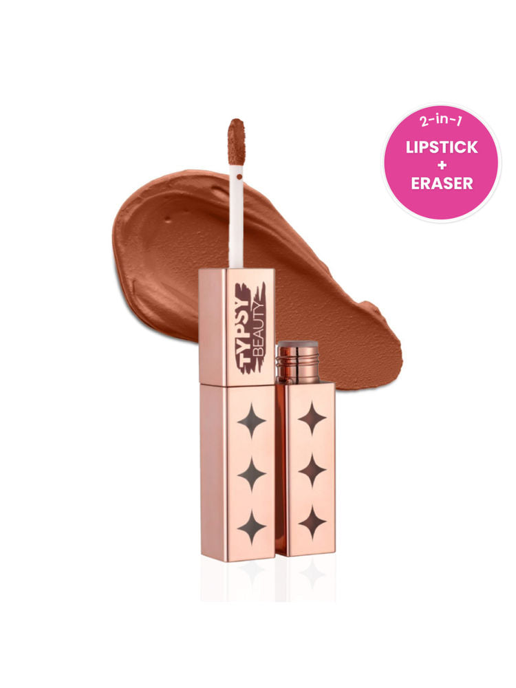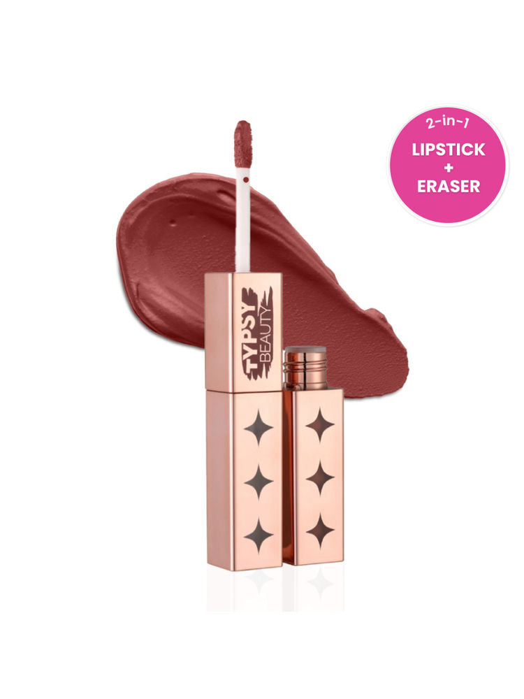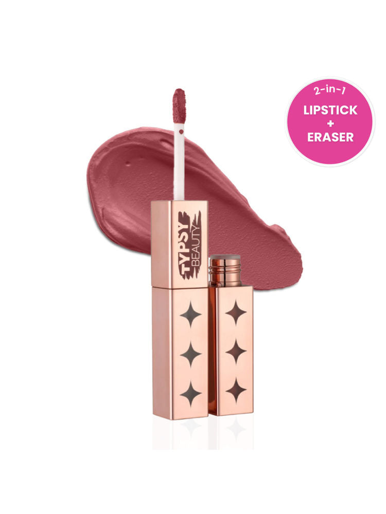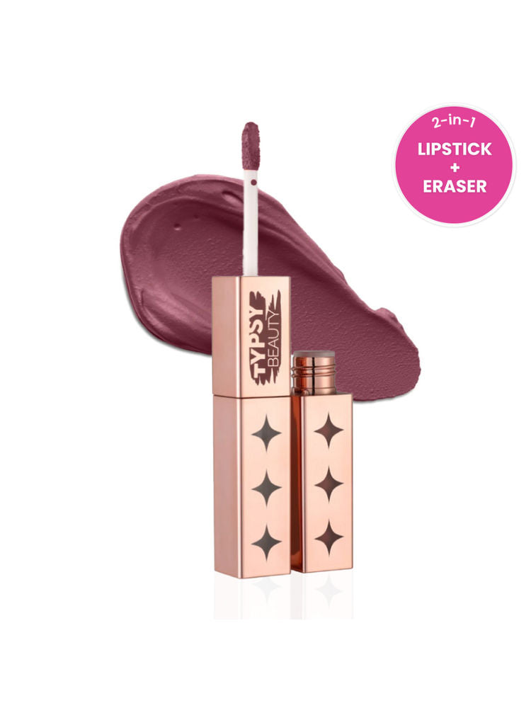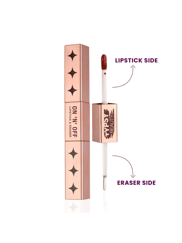 Typsy Beauty ON 'n' OFF Lipstick And Eraser features a long-wear matte lipstick on one end and a gentle remover balm on the other. The lipstick provides intense pigment and smooth application, while the remover easily erases even the most stubborn tints without drying the lips.