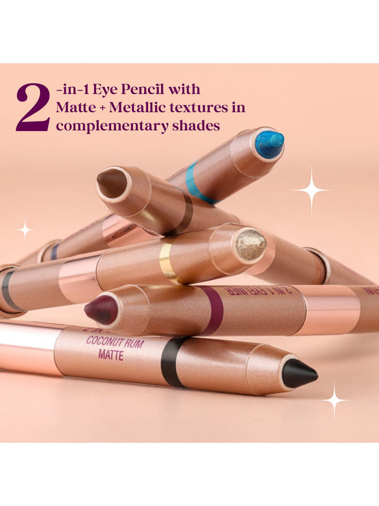 Typsy Beauty Twice the Fun 2 in 1 Eyeliner features a dual-ended design with a bold liquid liner on one end and a smudge-proof kajal pencil on the other. Perfect for creating sharp wings or soft smokey eyes, this multitasking tool is a must-have for versatile eye looks.